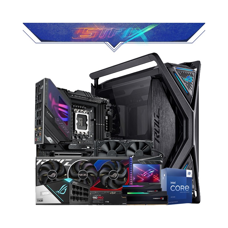 Especificaciones: Procesador Intel Core i9 13900KF Tarjeta Madre Asus ROG Maximus Z790 Hero Enfriamiento Liquido Asus ROG Ryujin II 240 RAM G.Skill Trident Z5 RGB Negra 32GB 2x16GB DDR5 5600Mhz Unidad de Estado Solido SSD NVMe M.2 Samsung 980 Pro, 1TB Nvidia Asus ROG Strix GeForce RTX 4090 24GB GDDR6X Gabinete ASUS Rog Hyperion GR 701 Fuente de Poder Asus ROG Thor 1200W Platinum II
